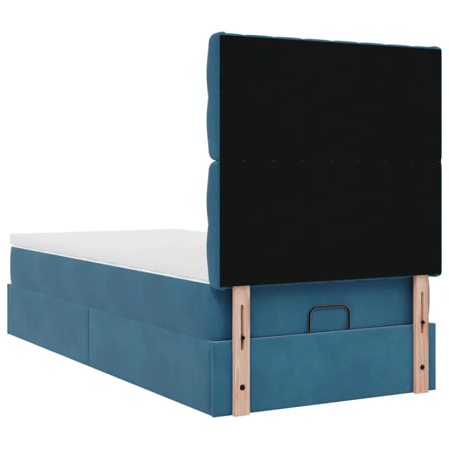 vidaXL Otomanski posteljni okvir z vzmetnicami moder 90x200cm žamet