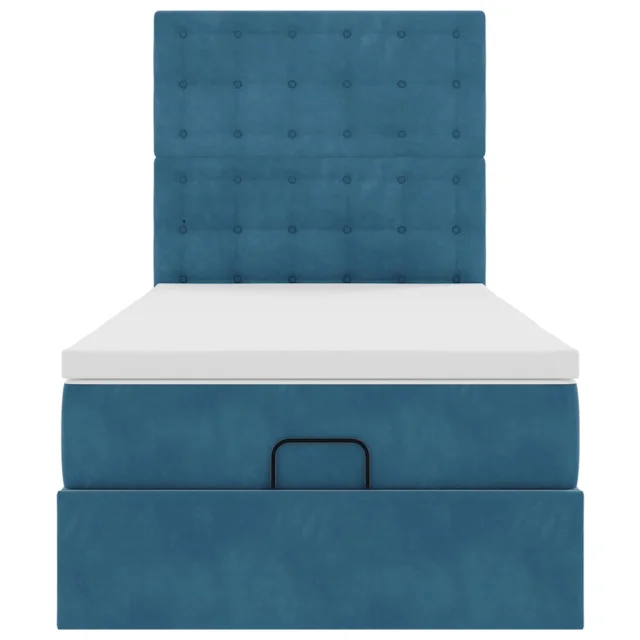 vidaXL Otomanski posteljni okvir z vzmetnicami moder 90x200cm žamet