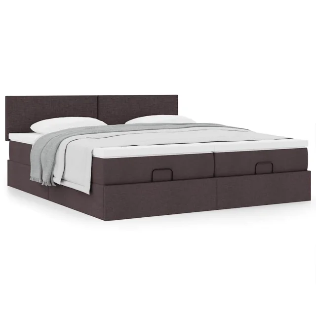 vidaXL Otomanski posteljni okvir z vzmetnicami rjav 180x200 cm blago