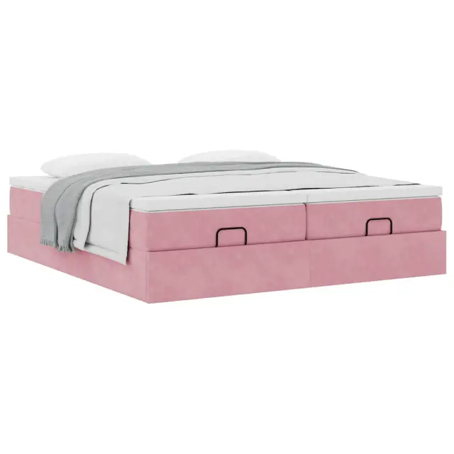 vidaXL Otomanski posteljni okvir z vzmetnicami roza 160x200cm žamet