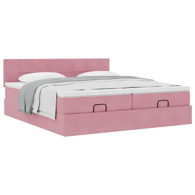 vidaXL Otomanski posteljni okvir z vzmetnicami roza 160x200cm žamet
