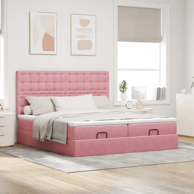 vidaXL Otomanski posteljni okvir z vzmetnicami roza 180x200cm žamet