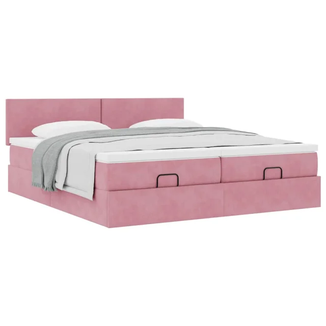 vidaXL Otomanski posteljni okvir z vzmetnicami roza 180x200cm žamet