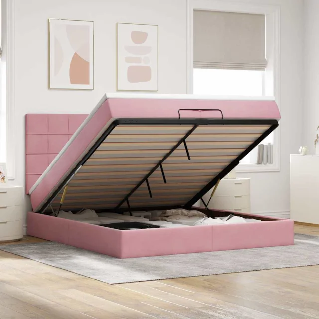 Uporabite ta otomanski posteljni okvir z vzmetnicami za miren spanec! Ponuja vam rešitev za shranjevanje in udobno izkušnjo spanja.