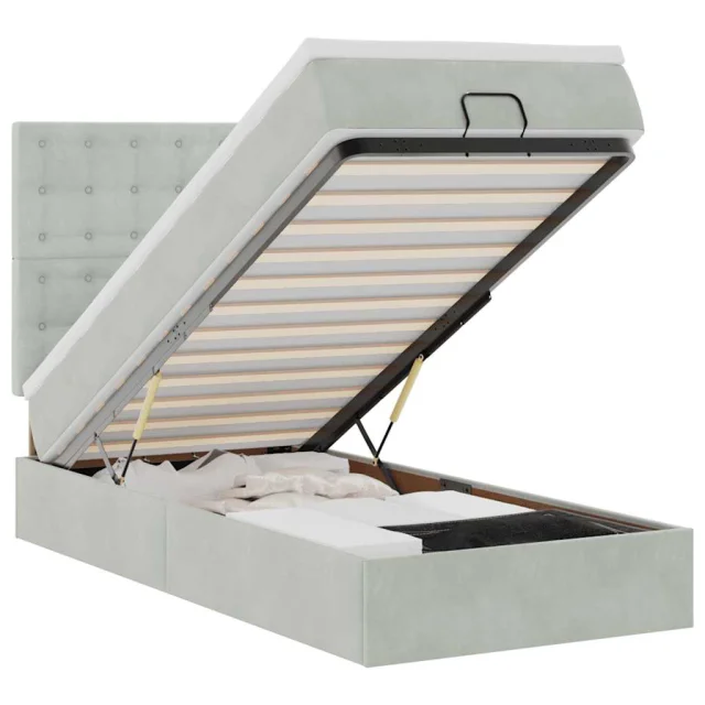 Uporabite ta otomanski posteljni okvir z vzmetnicami za miren spanec! Ponuja vam rešitev za shranjevanje in udobno izkušnjo spanja.