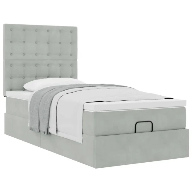 vidaXL Otomanski posteljni okvir z vzmetnicami siv 100x200cm žamet