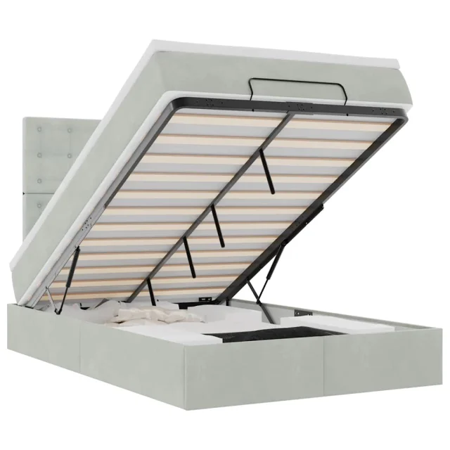 Uporabite ta otomanski posteljni okvir z vzmetnicami za miren spanec! Ponuja vam rešitev za shranjevanje in udobno izkušnjo spanja.