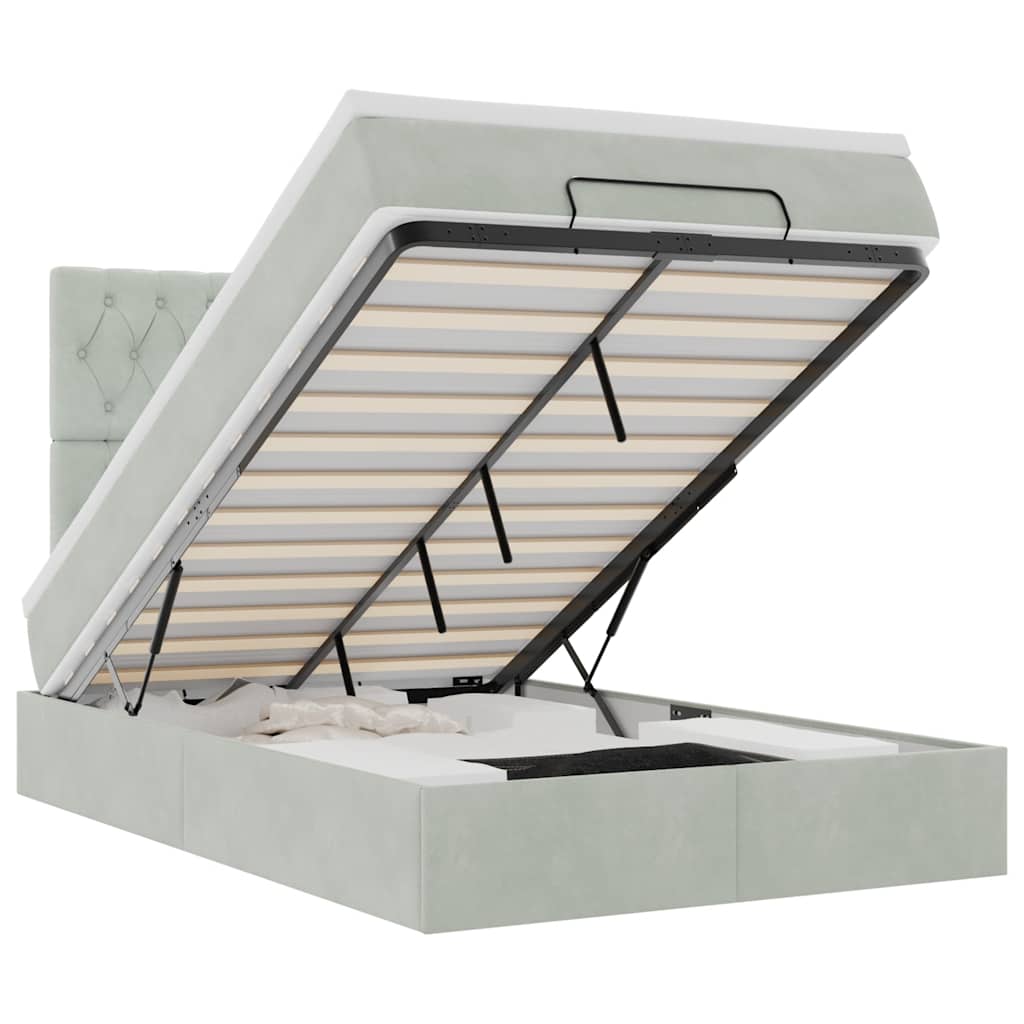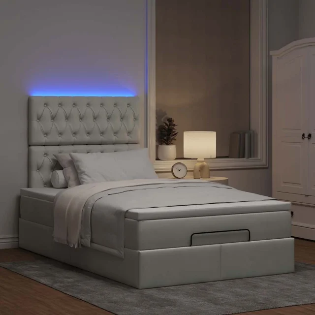 Uporabite ta otomanski posteljni okvir z vzmetnicami za miren spanec! Ponuja vam rešitev za shranjevanje in udobno izkušnjo spanja.