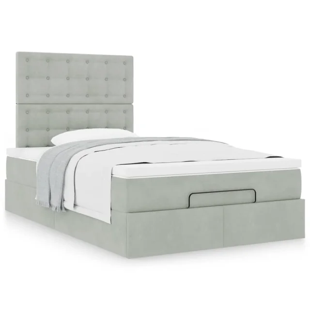 vidaXL Otomanski posteljni okvir z vzmetnicami siv 120x190cm žamet