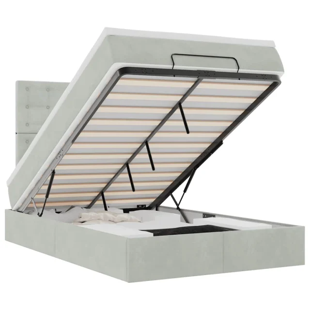 Uporabite ta otomanski posteljni okvir z vzmetnicami za miren spanec! Ponuja vam rešitev za shranjevanje in udobno izkušnjo spanja.