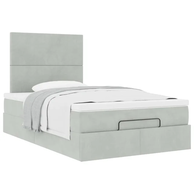 vidaXL Otomanski posteljni okvir z vzmetnicami siv 120x200cm žamet