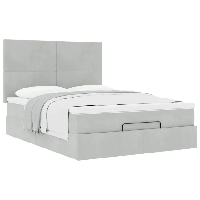 vidaXL Otomanski posteljni okvir z vzmetnicami siv 140x190cm žamet
