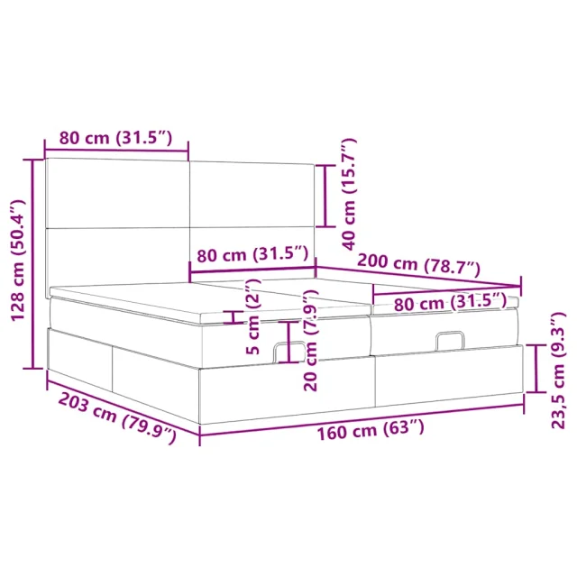 • Dimenzije (vsaka): 80 x 200 x 20 cm (Š x D x V)