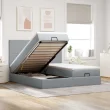 • Veliko prostora za shranjevanje pod posteljo: Zahvaljujoč hidravličnemu dvižnemu mehanizmu je pod posteljnim okvirjem na voljo veliko prostora za shranjevanje pod posteljo, kar povečuje prostor, ne da bi zavzemal dodatno talno površino. S preprostim potegom ročaja se podnožje z letvami gladko dvigne, tako da lahko hitro in brez napora poberete svoje predmete.