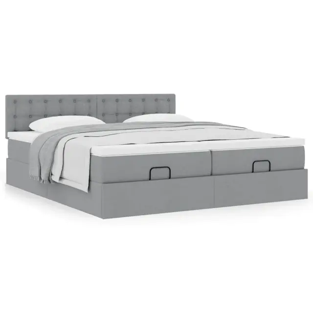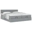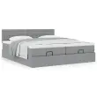 vidaXL Otomanski posteljni okvir z vzmetnicami siv 160x200 cm blago