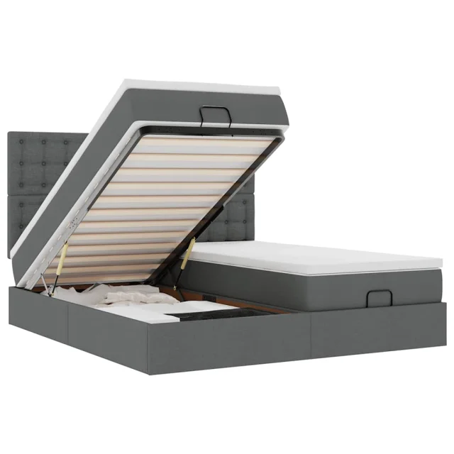 Uporabite ta otomanski posteljni okvir z vzmetnicami za miren spanec! Ponuja vam rešitev za shranjevanje in udobno izkušnjo spanja.