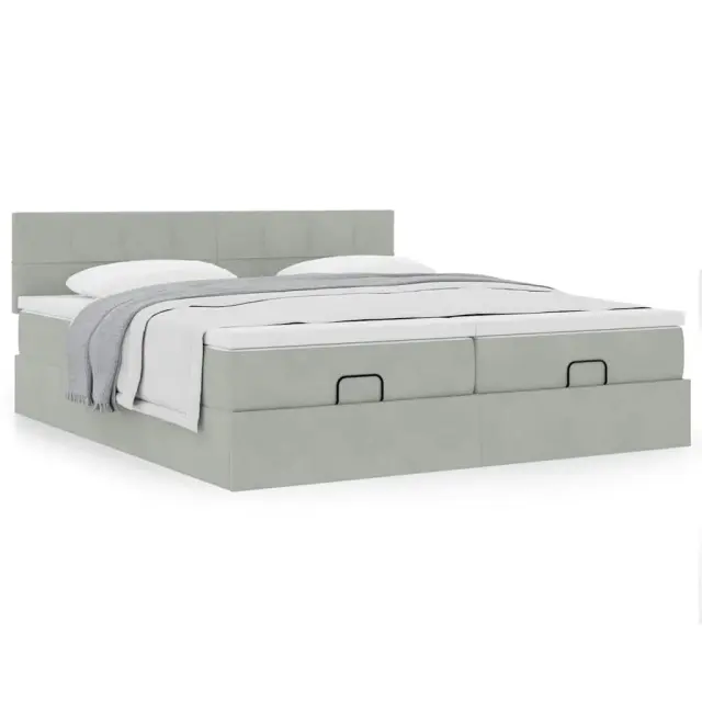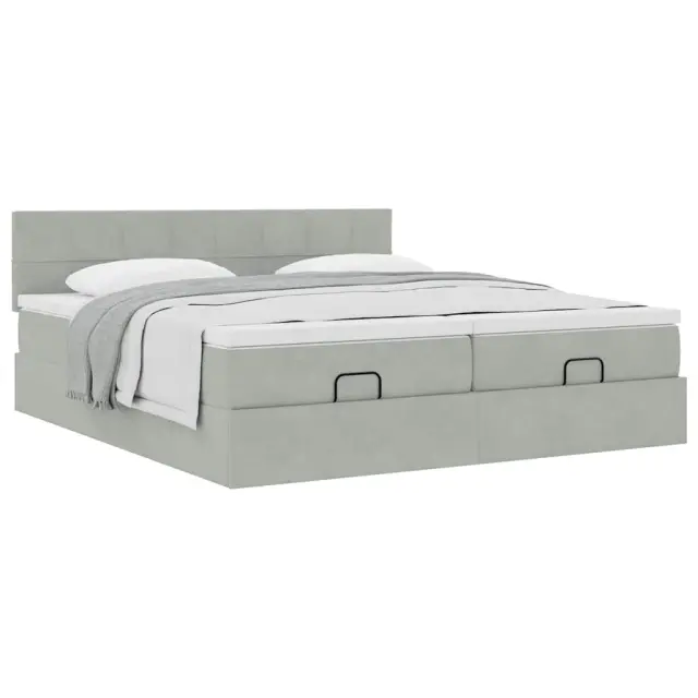 vidaXL Otomanski posteljni okvir z vzmetnicami siv 160x200 cm žamet