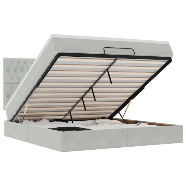 Uporabite ta otomanski posteljni okvir z vzmetnicami za miren spanec! Ponuja vam rešitev za shranjevanje in udobno izkušnjo spanja.