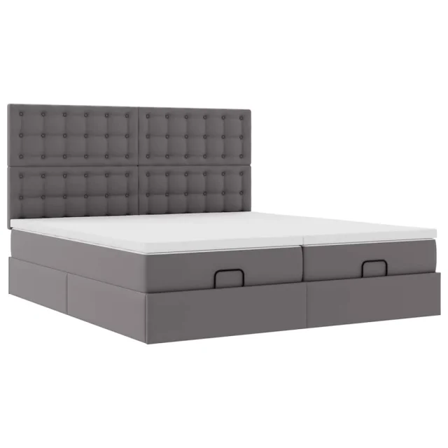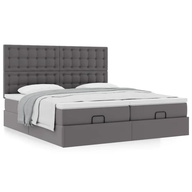 vidaXL Otomanski posteljni okvir z vzmetnicami siv 180x200cm um. usnje