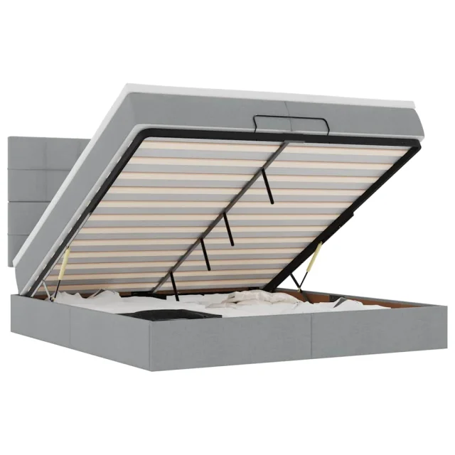 Uporabite ta otomanski posteljni okvir z vzmetnicami za miren spanec! Ponuja vam rešitev za shranjevanje in udobno izkušnjo spanja.