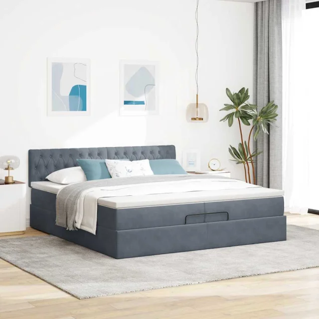 Uporabite ta otomanski posteljni okvir z vzmetnicami za miren spanec! Ponuja vam rešitev za shranjevanje in udobno izkušnjo spanja.