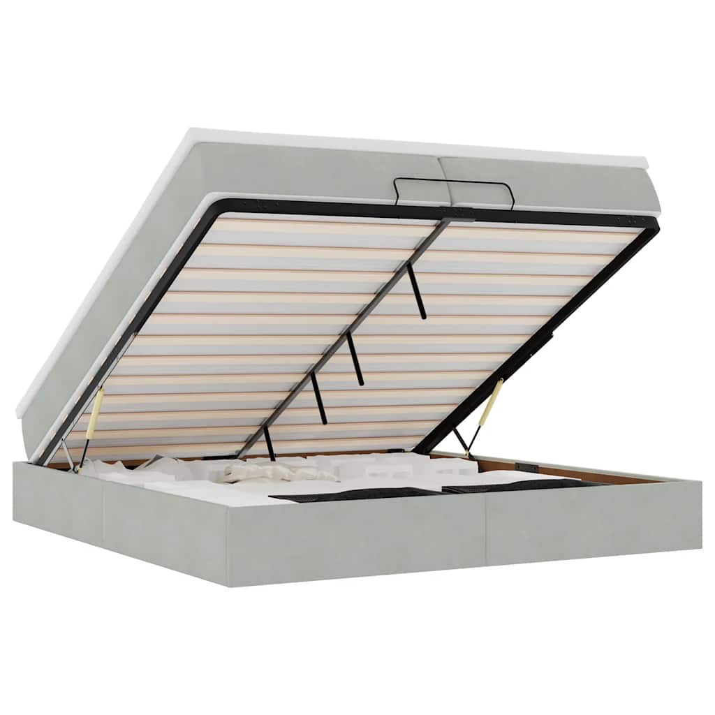 vidaXL Otomanski posteljni okvir z vzmetnicami siv 200x200cm žamet