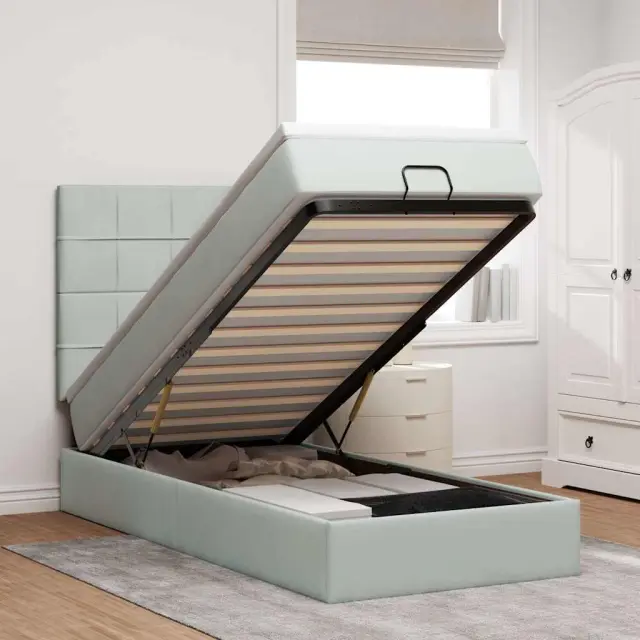 Uporabite ta otomanski posteljni okvir z vzmetnicami za miren spanec! Ponuja vam rešitev za shranjevanje in udobno izkušnjo spanja.