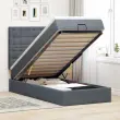 • Veliko prostora za shranjevanje pod posteljo: Zahvaljujoč hidravličnemu dvižnemu mehanizmu je pod posteljnim okvirjem na voljo veliko prostora za shranjevanje pod posteljo, kar povečuje prostor, ne da bi zavzemal dodatno talno površino. S preprostim potegom ročaja se podnožje z letvami gladko dvigne, tako da lahko hitro in brez napora poberete svoje predmete.