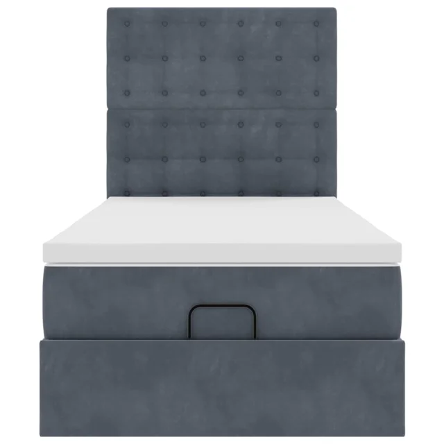 vidaXL Otomanski posteljni okvir z vzmetnicami siv 90x190cm žamet