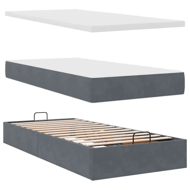 vidaXL Otomanski posteljni okvir z vzmetnicami siv 90x200cm žamet