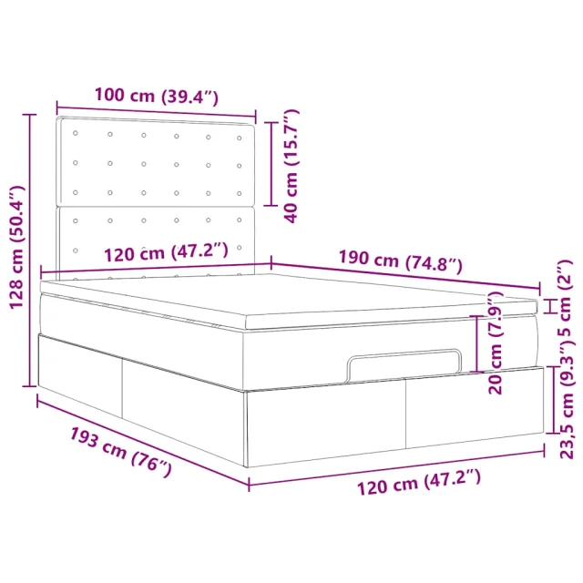 • Dimenzije: 120 x 190 x 20 cm (Š x D x V)