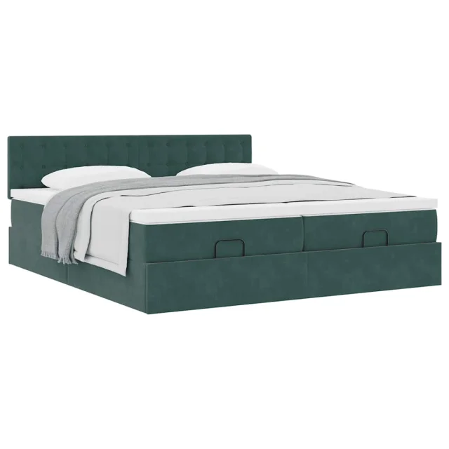 vidaXL Otomanski posteljni okvir z vzmetnicami zelen 200x200cm žamet