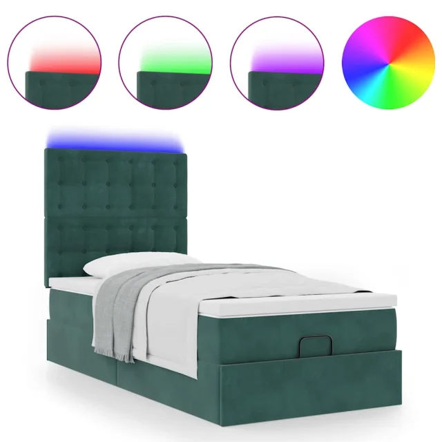 vidaXL Otomanski posteljni okvir z vzmetnicami zelen 90x200cm žamet
