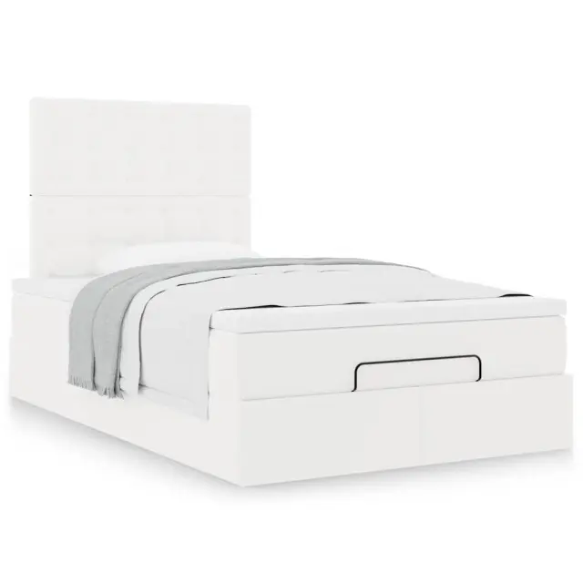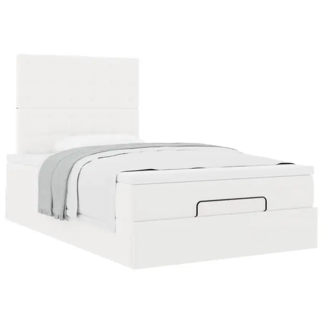 vidaXL Otomanski posteljni okvir z vzmetnico bel 120x190 cm um. usnje
