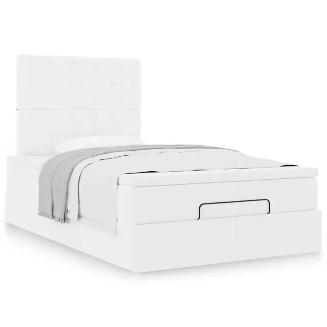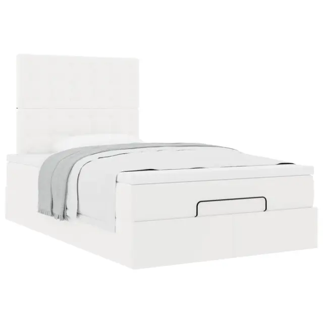 vidaXL Otomanski posteljni okvir z vzmetnico bel 120x200 cm um. usnje