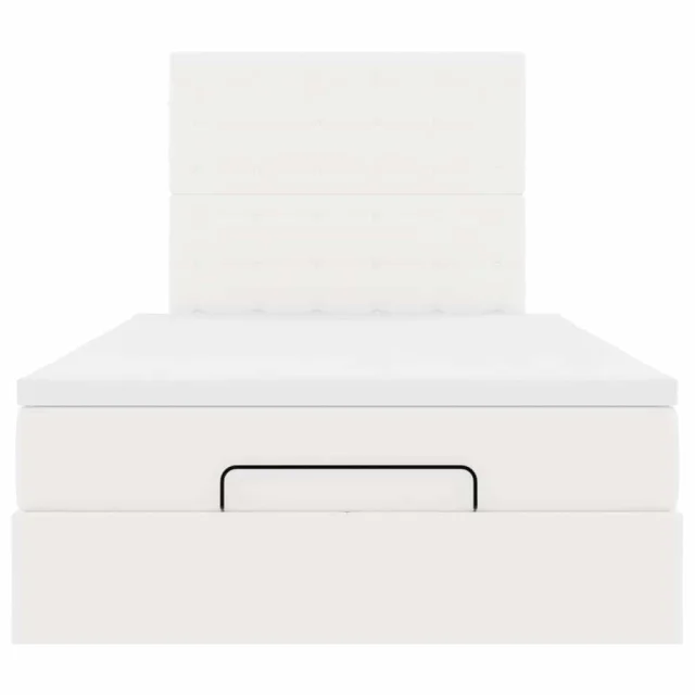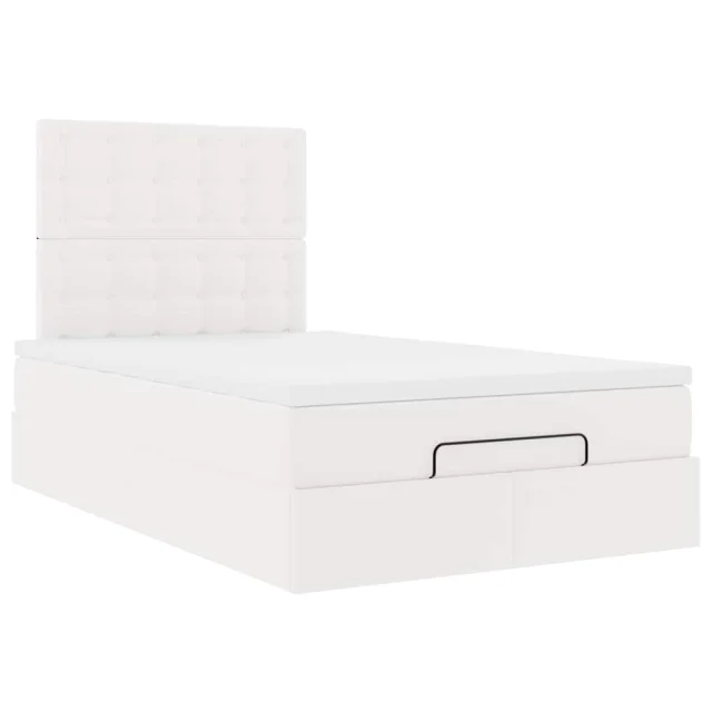 vidaXL Otomanski posteljni okvir z vzmetnico bel 120x200 cm um. usnje