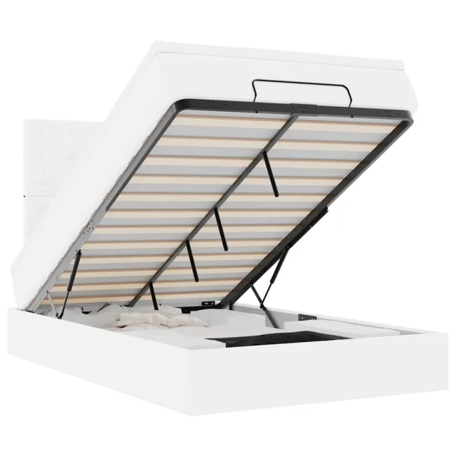 S tem okvirjem za posteljo otoman z ležiščem lahko uživate v mirnem spancu! Ponuja vam rešitev za shranjevanje in udobno spanje.