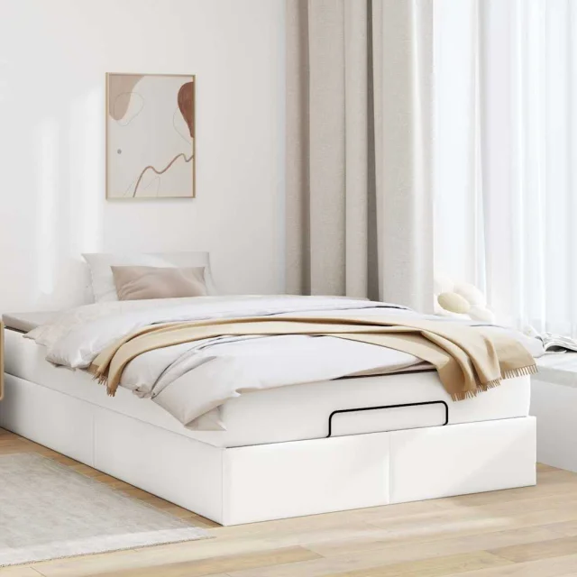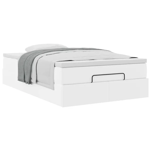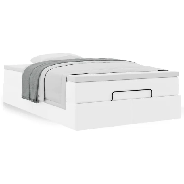 vidaXL Otomanski posteljni okvir z vzmetnico bel 120x200 cm um. usnje