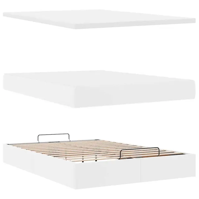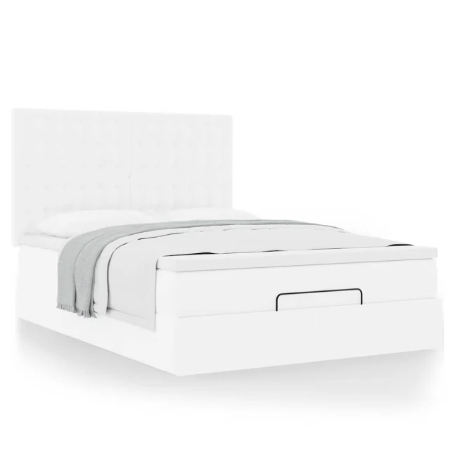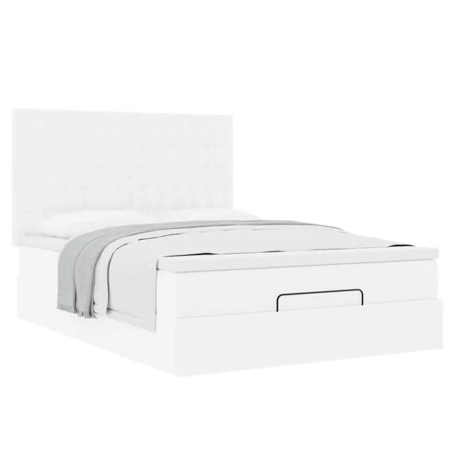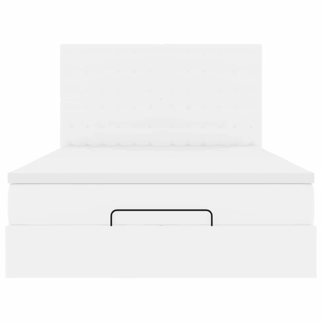 vidaXL Otomanski posteljni okvir z vzmetnico bel 140x190 cm um. usnje
