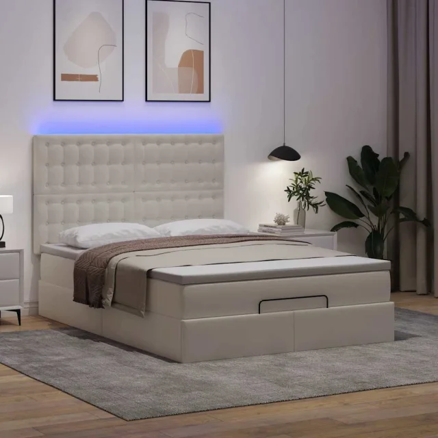 S tem okvirjem za posteljo otoman z ležiščem lahko uživate v mirnem spancu! Ponuja vam rešitev za shranjevanje in udobno spanje.