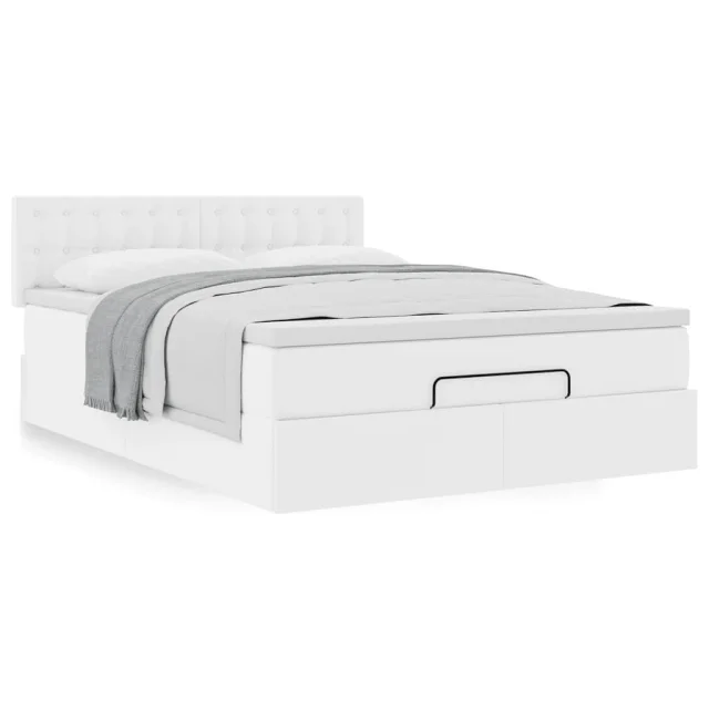 vidaXL Otomanski posteljni okvir z vzmetnico bel 140x200 cm um. usnje