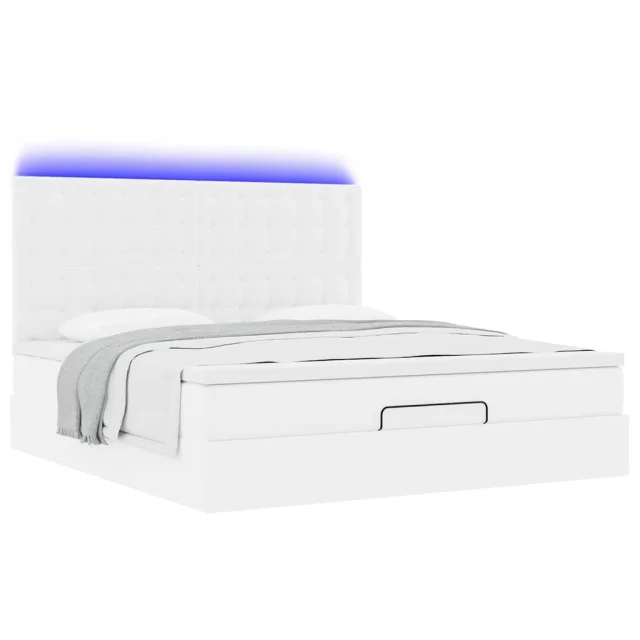 S tem okvirjem za posteljo otoman z ležiščem lahko uživate v mirnem spancu! Ponuja vam rešitev za shranjevanje in udobno spanje.