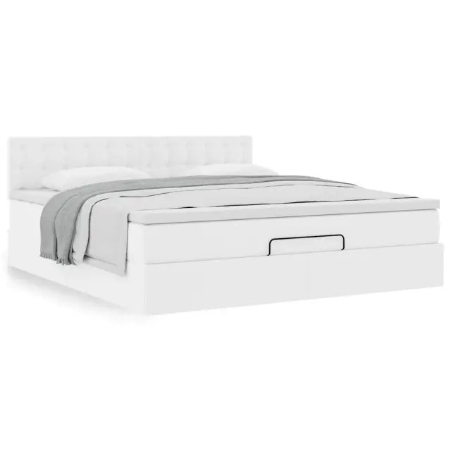 vidaXL Otomanski posteljni okvir z vzmetnico bel 180x200 cm um. usnje