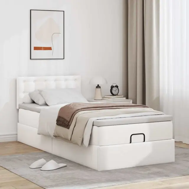 vidaXL Otomanski posteljni okvir z vzmetnico bel 90x190 cm um. usnje