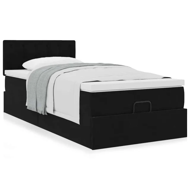 vidaXL Otomanski posteljni okvir z vzmetnico črn 100x200 cm žamet