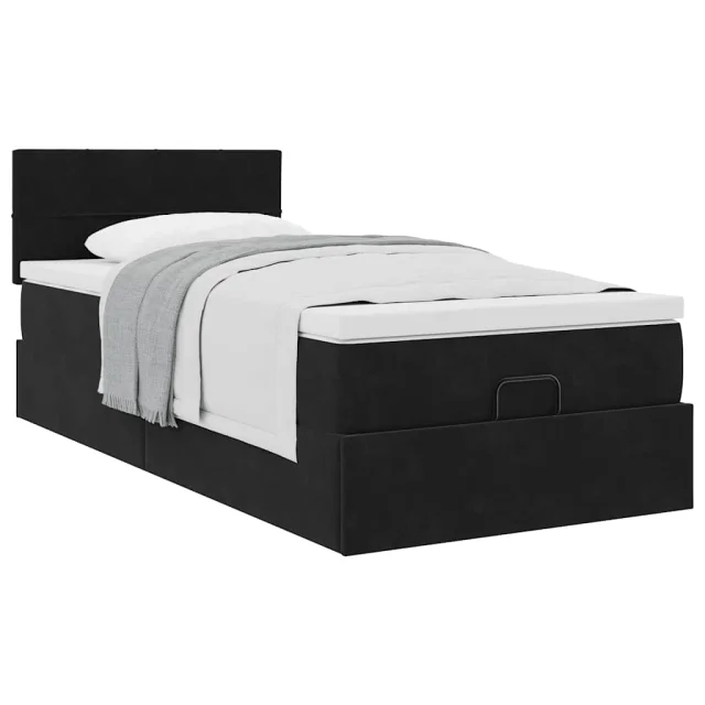 vidaXL Otomanski posteljni okvir z vzmetnico črn 100x200 cm žamet