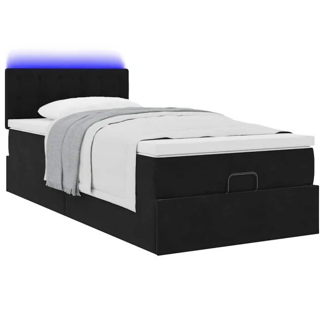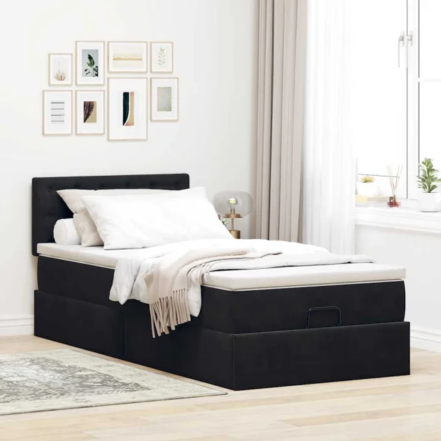 vidaXL Otomanski posteljni okvir z vzmetnico črn 100x200 cm žamet