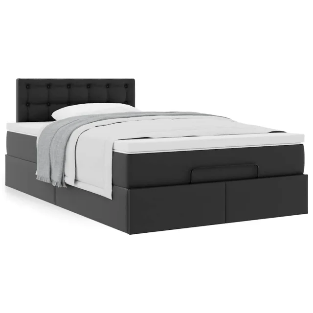 vidaXL Otomanski posteljni okvir z vzmetnico črn 120x190 cm um. usnje