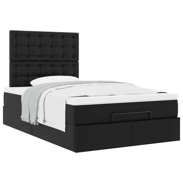 vidaXL Otomanski posteljni okvir z vzmetnico črn 120x200 cm um. usnje