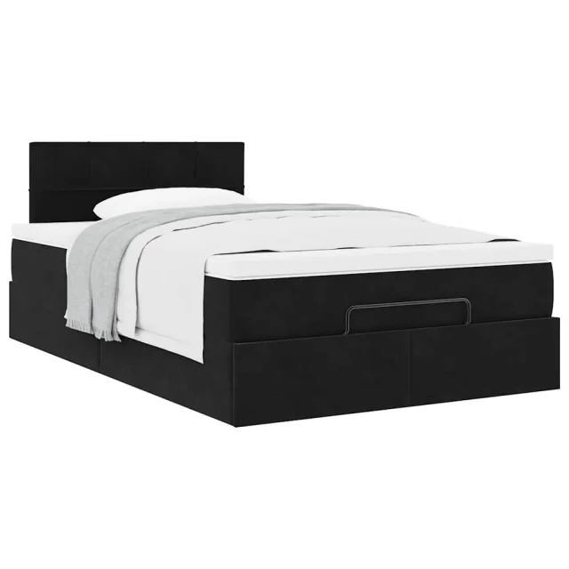 vidaXL Otomanski posteljni okvir z vzmetnico črn 120x200 cm žamet